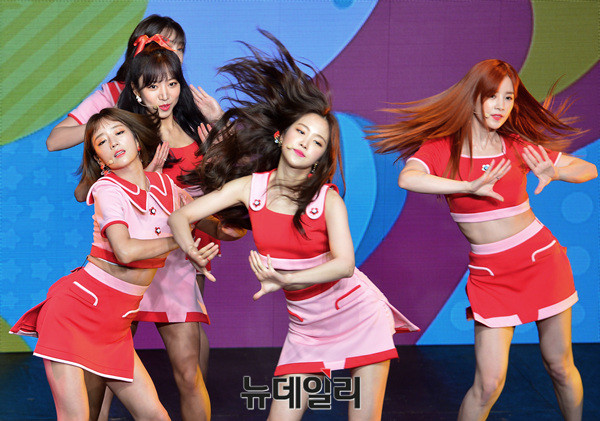 에이핑크(APINK : 박초롱, 윤보미, 정은지, 손나은, 김남주, 오하영) 오하영이 26일 오후 서울 마포구 신한카드 판스퀘어에서 열린 여섯 번째 미니앨범 '핑크업(PINK UP)' 발매기념 쇼케이스에 참석해 신곡 무대를 선보이고 있다.