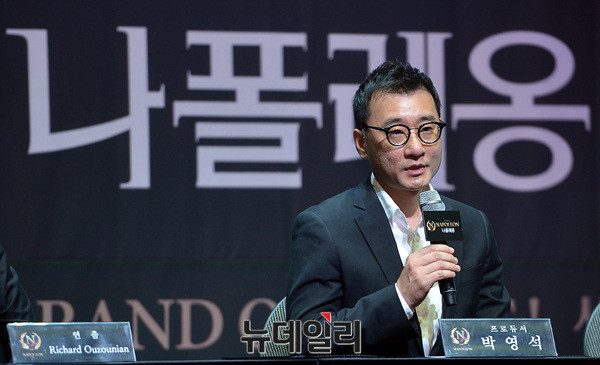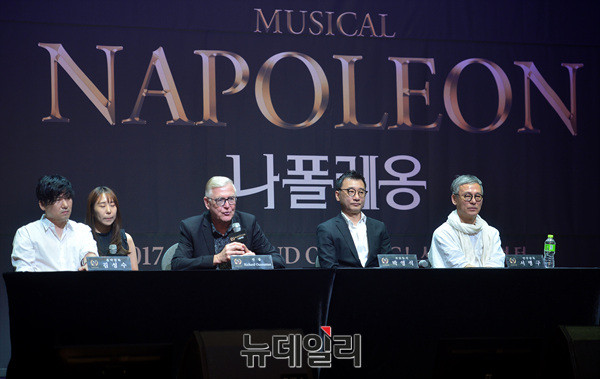 뮤지컬 '나폴레옹(NAPOLEON)'의 제작진(왼쪽부터 김성수 음악감독, 연출 리차드 오조니언(Richard Ouzounian), 박영석 프로듀서, 서병구 안무감독)들이 27일 오후 서울 강남구 광림아트센터에서 열린 제작발표회에서 질문에 답하고 있다.