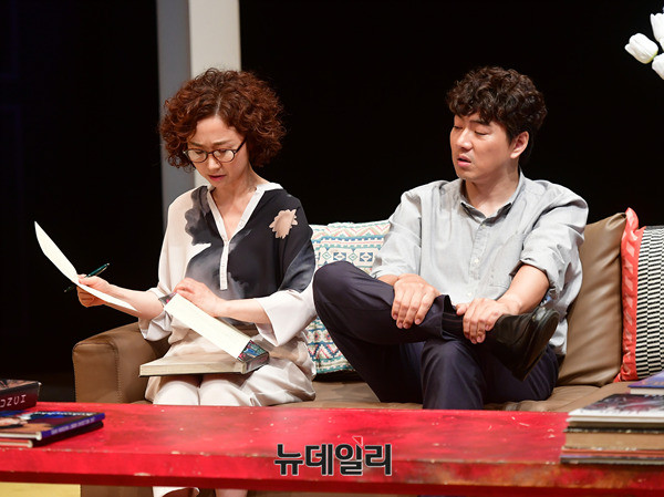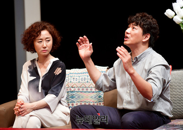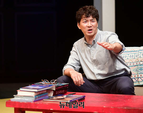 배우 송일국이 27일 오후 서울 서초구 예술의전당 자유소극장에서 열린 연극 '대학살의신' 프레스콜에서 연극장면을 시연하고 있다. 첫 소극장 연극무대에 선 송일국은 미셸 역을 맡았다.