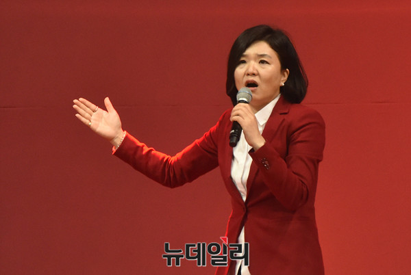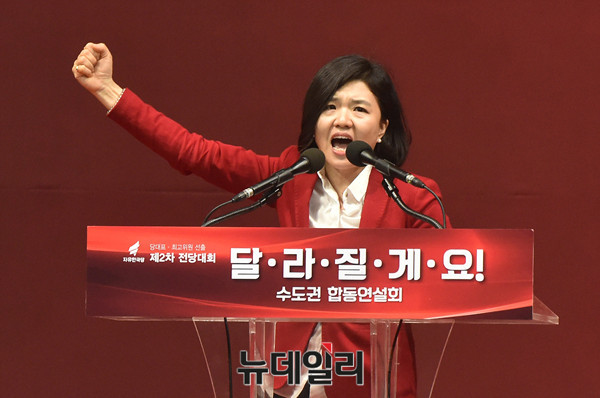 자유한국당 류여해 최고위원 후보가 29일 오후 경기 안양실내체육관에서 열린 7·3 전당대회 제4차 합동연설회에서 정견발표를 하고 있다. (경기 안양=뉴데일리 이종현 기자)
