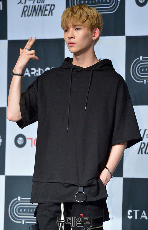 그룹 '업텐션(UP10TION : 진후, 선율, 쿤, 웨이, 샤오, 고결, 비토, 규진, 환희)' 쿤이 29일 오후 서울 강남구 일지아트홀에서 열린 여섯 번째 미니앨범 '스타;덤(STAR;DOM)' 발매 기념 쇼케이스에 참석해 포토타임을 갖고 있다.