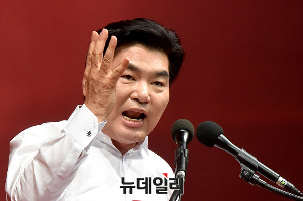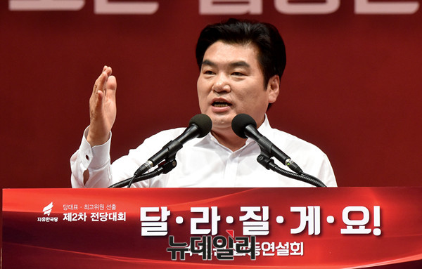 자유한국당 원유철 당대표 후보가 29일 오후 경기 안양실내체육관에서 열린 7·3 전당대회 제4차 합동연설회에서 정견발표를 하고 있다. (경기 안양=뉴데일리 이종현 기자)