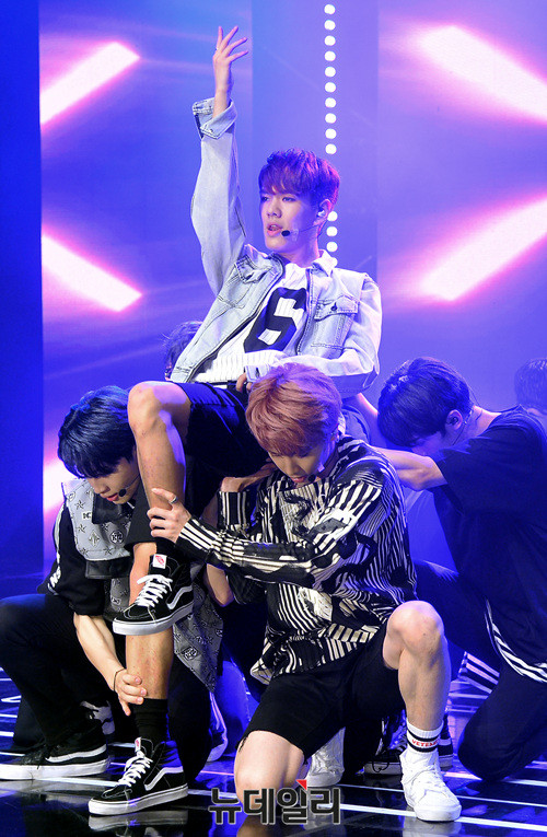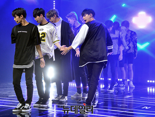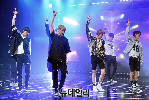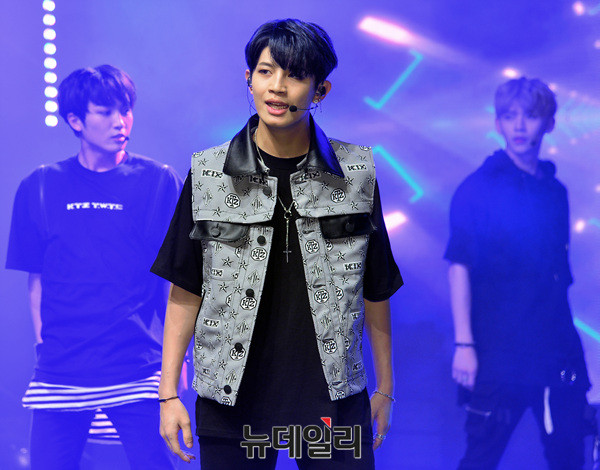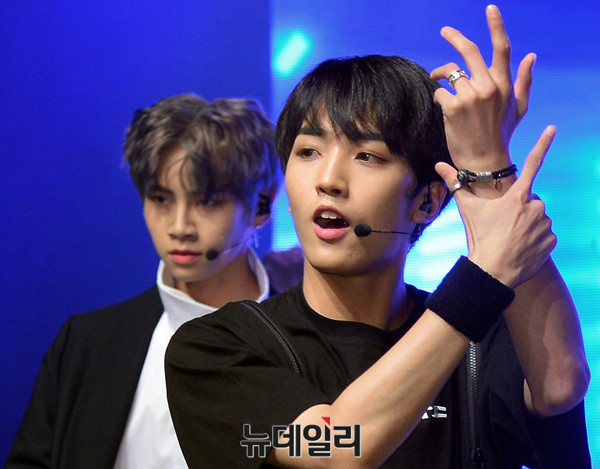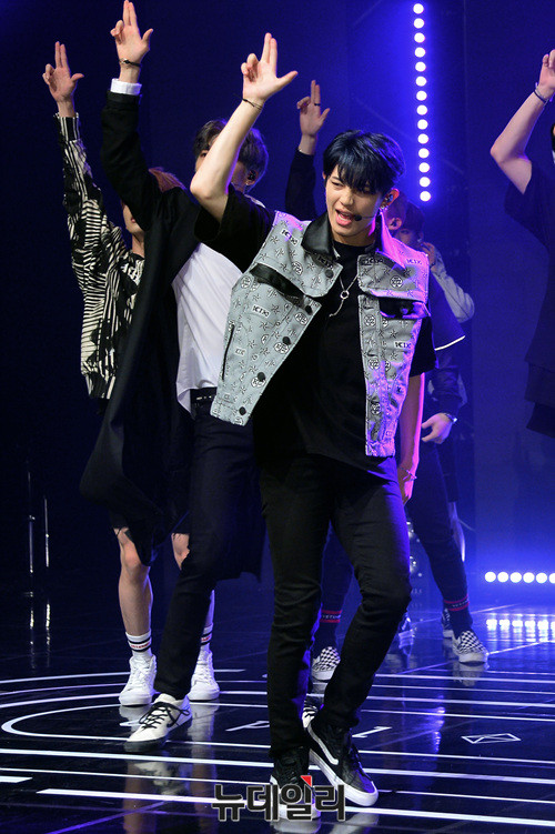 그룹 '업텐션(UP10TION : 진후, 선율, 쿤, 웨이, 샤오, 고결, 비토, 규진, 환희)' 선율이 29일 오후 서울 강남구 일지아트홀에서 열린 여섯 번째 미니앨범 '스타;덤(STAR;DOM)' 발매 기념 쇼케이스에서 신곡 무대를 선보이고 있다.
