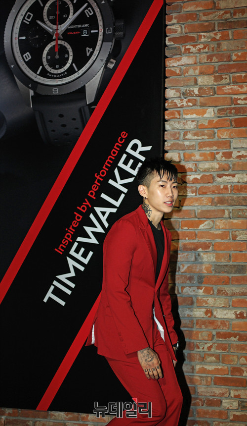 가수 박재범이 29일 오후 서울 성동구 레이어 57 스튜디오에서 열린 '몽블랑 타임워커 컬렉션' 국내 출시 기념 행사에 참석해 포즈를 취하고 있다.