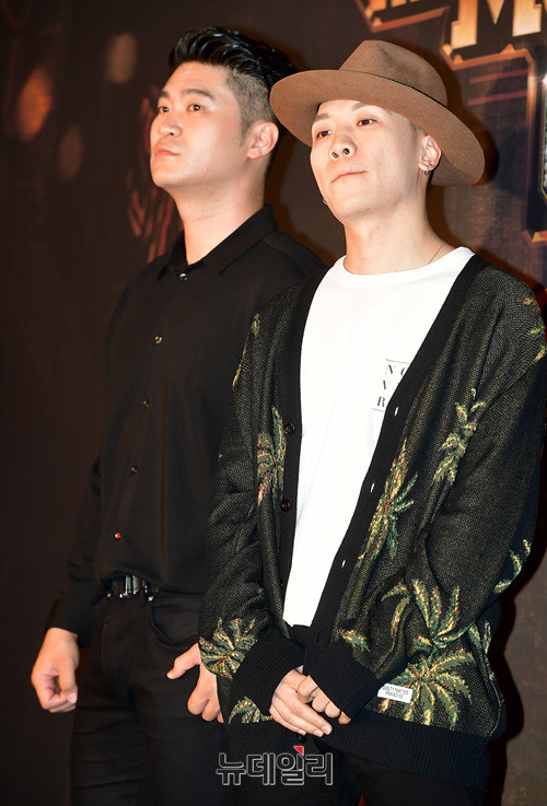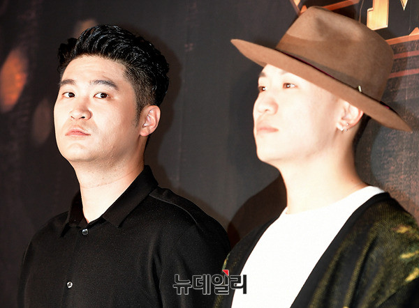 다이나믹듀오 최자와 개코(오른쪽)가 30일 오전 서울 마포구 aA디자인뮤지엄에서 열린 Mnet 쇼미더머니6 제작발표회에 참석해 포토타임을 갖고 있다.