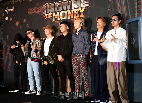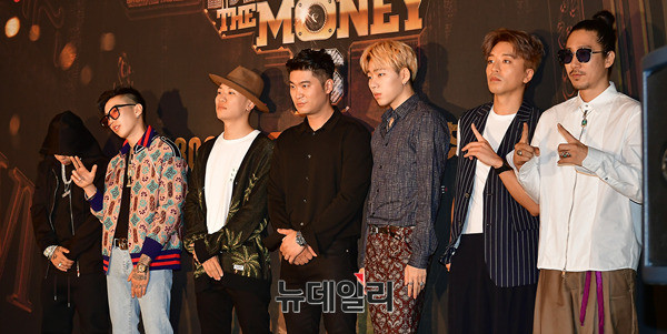 쇼미더머니6 프로듀서 팀을 맡은 출연진이 30일 오전 서울 마포구 aA디자인뮤지엄에서 열린 Mnet 쇼미더머니6 제작발표회에 참석해 포토타임을 갖고 있다.