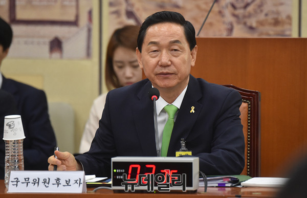 김상곤 부총리 겸 교육부 장관 후보자가 30일 오전 국회에서 속개된 인사청문회에서 야당 의원들의 논문표절 의혹 사과요구하자 "1992년에 논문을 쓸 당시 관행이었다"고 항변하고 있다.