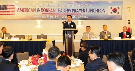 한·미 양국 대통령의 첫 정상 회담을 맞아 양국의 기독교 지도자들 300여 명이 한반도 평화와 한미 우호를 위한 기도회를 가졌다. 27일(현지시각), 미국 워싱턴DC 힐튼호텔에서 열린 이번 오찬기도회에는 이영훈 목사(여의도순복음교회 담임)와 안호영 주미 대사를 비롯해 미국 국가조찬기도회 하원의원 회장인 로버트 애덜홀트(Robert Adelholt), 토니 홀(Tony Hall, 前 미연방하원의원), 샘 로러(Sam Rohrer, American Pastor’s Network 총재) 등 미국측 인사와 황의춘 회장(세계한국인기독교총연합회), 정근모 장로(前 과기부 장관), 김영진 장로(前 농림부 장관), 홍문종 의원(국회조찬기도회장), 조배숙 의원(국민의당), 정유섭 의원(자유한국당), 고명진 목사(수원침례교회 담임), 한기채 목사(중앙성결교회 담임), 유관재 목사(기독교한국침례회 총회장), 이태근 목사(여의도순복음분당교회 담임) 등 한미 정·교계 지도자들이 참석했다.