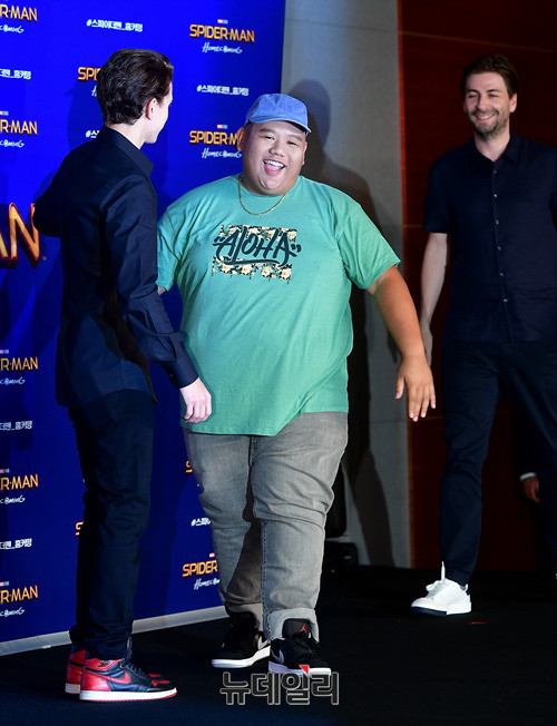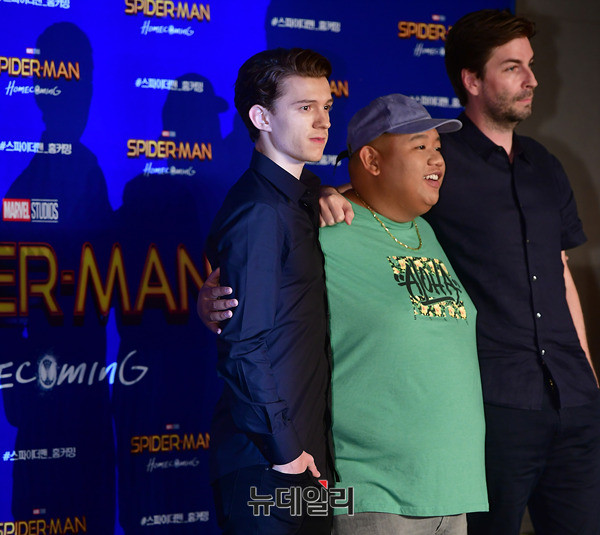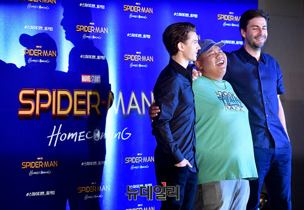 스파이더맨 홈커밍의 출연배우 톰 홀랜드, 제이콥 배덜런, 존 왓츠 감독(왼쪽부터)이 3일 오전 서울 영등포구 콘래드 서울 호텔에서 열린 스파이더맨 홈커밍 기자간담회에서 포토타임을 갖고 있다. 스파이더맨 홈커밍은 마블社에서 선보이는 첫 '스파이더맨' 단독 영화이자 약 3년 만에 돌아온 새로운 '스파이더맨' 시리즈로 오는 5일 개봉을 앞두고 있다.
