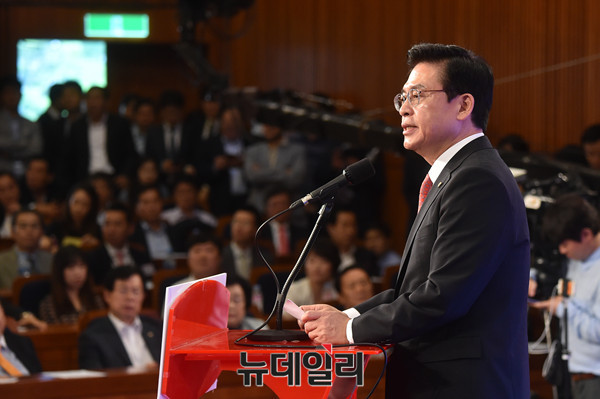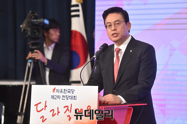 자유한국당 정우택 당대표 권한대행이 3일 오전 국회 헌정기념관에서 열린 전당대회에서 이 인사말을 하고 있다.