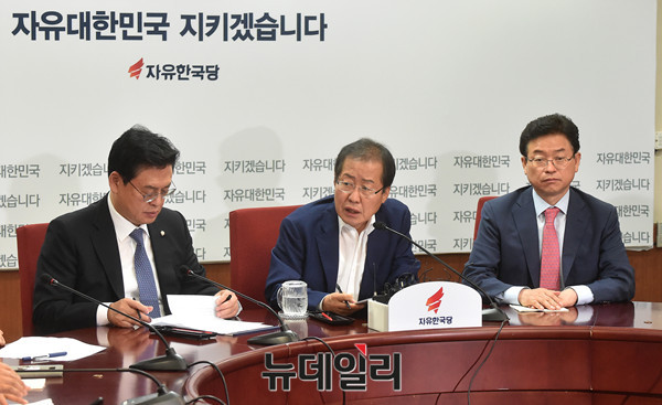 자유한국당 홍준표 신임 대표가 4일 오전 서울 여의도 당사에서 열린 최고위원회의에서 발언을 하고 있다.