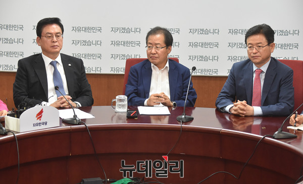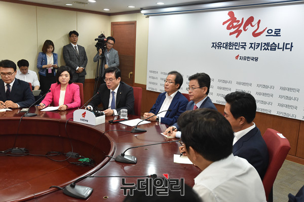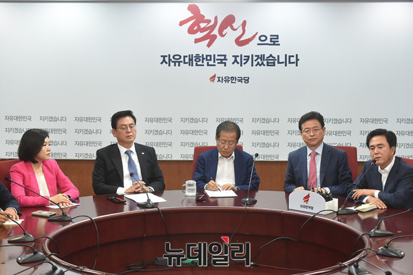 자유한국당 홍준표 신임 대표 및 지도부가 4일 오전 서울 여의도 당사에서 첫 최고위원회의를 갖고 있다.