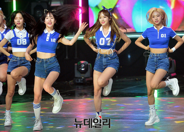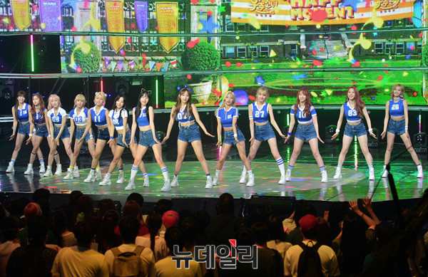 그룹 우주소녀(설아, 엑시, 보나, 성소, 은서, 다영, 다원, 수빈, 선의, 여름, 미기, 루다, 연정)가 5일 오후 일산 MBC드림센터에서 열린 생방송 '쇼 챔피언(SHOW CHAMPION)'에서 신곡 '해피(HAPPY)'를 선보이고 있다. 이날 생방송에는 김태우, 이효리, 에이핑크, 마마무 등이 출연했다.
