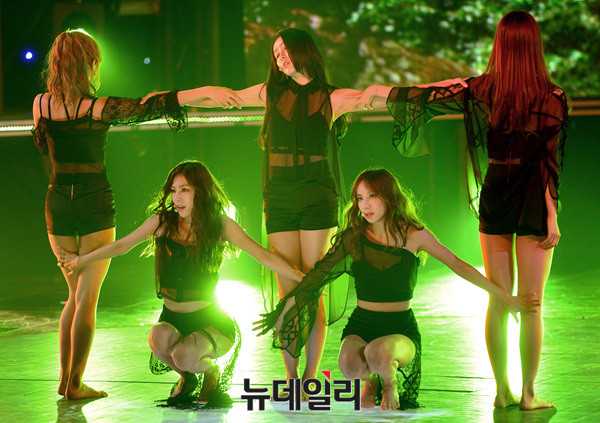 그룹 스텔라(Stellar : 효은, 민희, 가영, 전율)가 5일 오후 일산 MBC드림센터에서 열린 생방송 '쇼 챔피언(SHOW CHAMPION)'에서 신곡 '세피로트의나무'를 선보이고 있다.이날 생방송에는 김태우, 이효리, 에이핑크, 마마무 등이 출연했다.