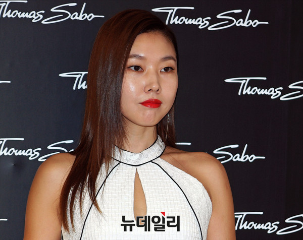 모델 한혜진이 6일 오후 서울 강남구 이유진갤러리에서 열린 주얼리 브랜드 '토마스사보' 행사에 참석해 포즈를 취하고 있다. 이날 행사에는 가수 한승연, 모델 한혜진, 배우 서강준, 정주연이 참석했다.