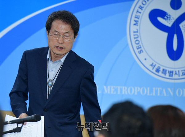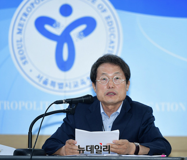 • 조희연 서울시교육감이 10일 오전 서울 종로구 서울시교육청에서 열린 취임 3주년 기자간담회에 입장하고 있다. 조 교육감은 이날 기자회견을 통해 자율형사립고 폐지 논란과 관련해 입장을 밝혔다.