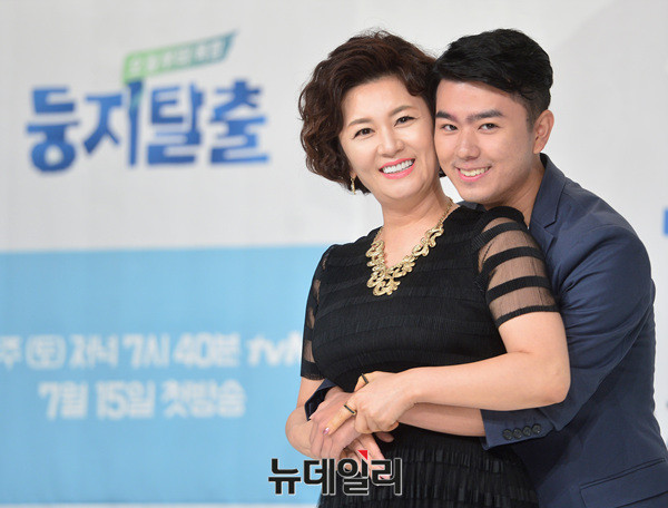 배우 김혜선과 아들 최원석이 10일 오후 서울 영등포 타임스퀘어에서 열린 '둥지탈출' 제작발표회에 참석해 포토타임을 갖고있다. '둥지탈출'은 연예인 자녀들이 부모님의 품을 떠나 낯선 환경에서 생활하며 성장하는 모습을 담은 예능프로그램. 오는 15일 오후 7시 40분 방송된다.
