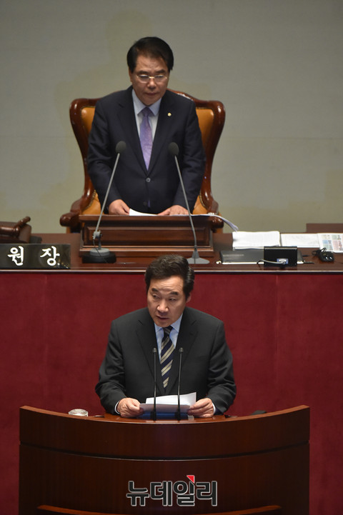 이낙연 국무총리가 10일 오후 국회에서 열린 예산결산특별위원회 전체회의에서 제안설명을 하고 있다.