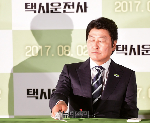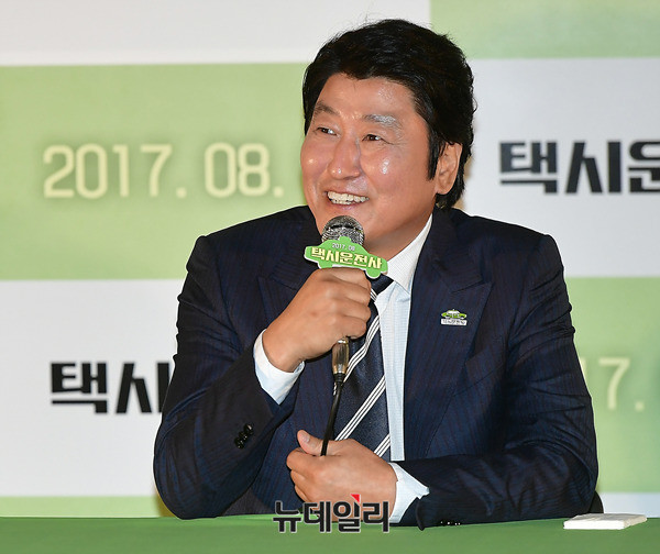 배우 송강호가 10일 오후 서울 강남구 메가박스 코엑스에서 열린 영화 '택시운전사(감독 장훈)' 언론시사회에 참석해 인사말을 하고 있다. 택시운전사는 오는 8월 2일 개봉 예정이다.