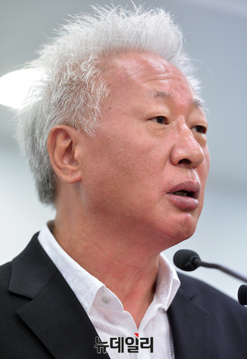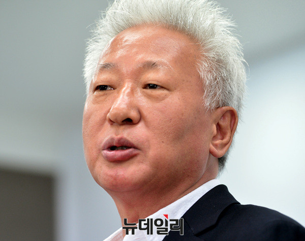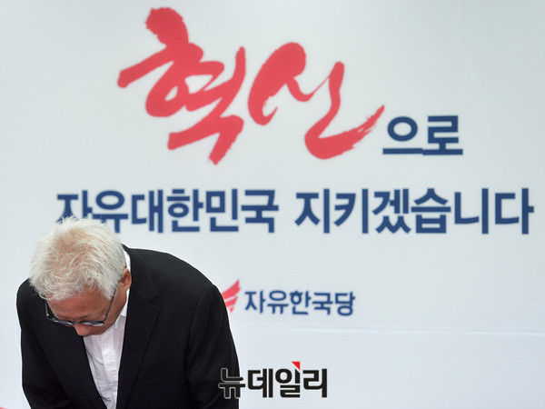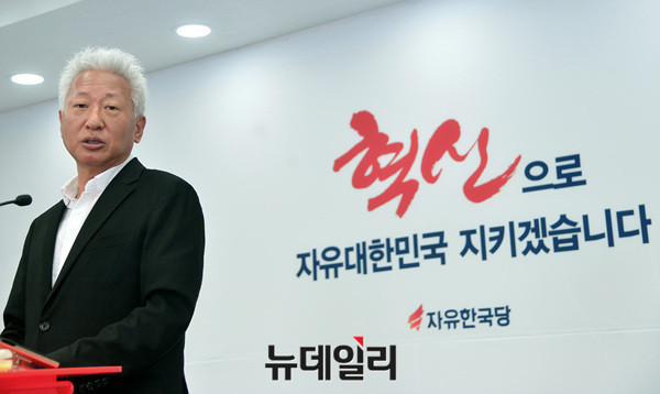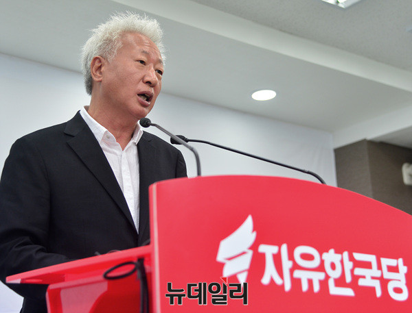 류석춘 자유한국당 혁신위원장이 11일 오전 서울 여의도 중앙당사에서 열린 취임 기자회견에서 질문에 답하고 있다. 류 위원장은 지난 10일 최고위원회의에서 인적·조직·정책 혁신 작업을 총지휘하는 혁신위원장에 임명됐다.