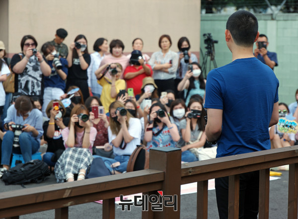 배우 임시완이 11일 오후 경기 양주시 감악산회관에서 입대를 앞두고 팬들과 인사하고 있다.