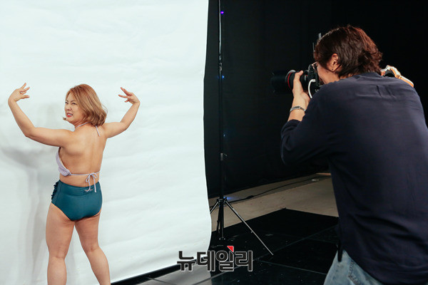 개그우먼 박나래의 비키니 사진. 1주년을 맞은 비디오스타 출연자들이 11일 오전 서울 마포구 아만티호텔에서 열린 비디오스타 1주년 기자간담회에서 비키니를 입은 사진을 공개했다. 이들은 1년 전 제작발표회에서 "시청률 1%돌파에 성공하면 비키니를 입고 촬영하겠다"는 공약에 따른 것. 이번 비키는 사진 촬영은 포토그래퍼로 활동 중인 가수 빽가가 맡았다.