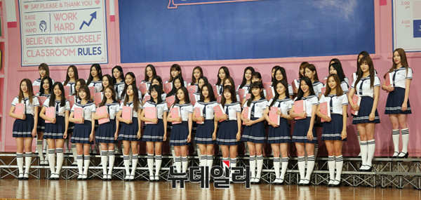 Mnet 예능프로그램 '아이돌학교' 참가생들이 12일 오전 서울 63컨벤션센터 그랜드볼룸에서 열린 Mnet '아이돌학교' 제작발표회에 참석해 포토타임을 갖고 있다.