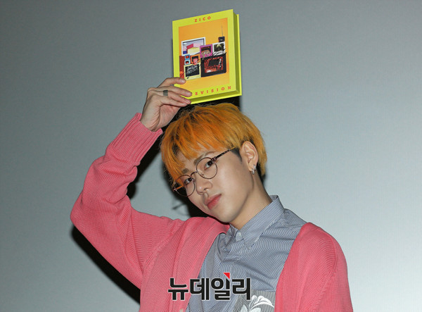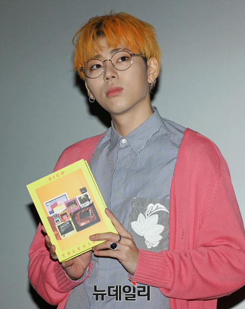 가수 지코(우지호)가 12일 오후 서울 마포구 CGV홍대에서 열린 솔로 두 번째 미니앨범 '텔레비전(Television)' 발매 기념 기자간담회에 참석해 포토타임을 갖고 있다.