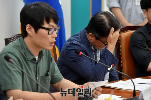 모네여성병원 안희성 병원장이 12일 오후 국회 더불어민주당 원내대표실에서 열린 '모네여성병원 신생아실 결핵감염사태 대책마련 간담회'에서 고개를 숙이고 있다. 신생아실 간호사가 결핵 확진 판정을 받은 모네여성병원의 영아 67명이 잠복결핵균에 감염된 사실이 확인된 바 있다.