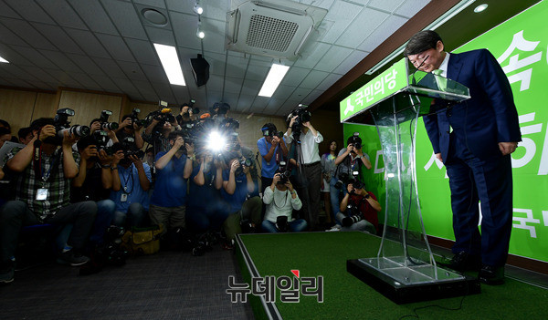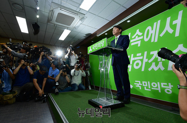 안철수 국민의당 전 대표가 12일 오후 서울 영등포구 국민의당사 브리핑룸에서 열린 긴급 기자회견에 입장하고 있다. 안 전 대표는 문준용 의혹 조작사건과 관련해 "성찰과 자숙의 시간을 갖겠다"고 밝혔다. 앞서 이날 새벽 이번 사건의 주범으로 지목된 이준서 전 최고위원이 구속된 바 있다.