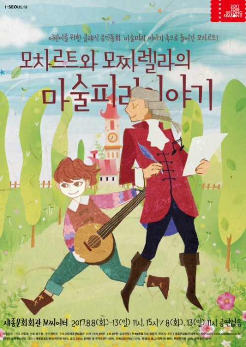 '모차르트와 모짜렐라의 마술피리 이야기'는 모차르트의 오페라 '마술피리'를 각색하고 노래와 연주가 있는 오페라 형식에 동화적 상상력을 더했다. 작곡가 모차르트와 그의 마음 속 친구 모짜렐라가 원작의 주인공들과 어울려 직접 모험을 펼쳐나가는 내용이다.원작 '마술피리'에 실린 아리아와 이중창뿐 아니라 세레나데 13번 '아이네 클라이네 나하트 무지크', '교향곡 40번', 오페라 '피가로의 결혼 서곡' 등 모차르트의 다른 대표곡들을 함께 감상할 수 있다. 서울뮤지컬페스티벌 예그린뮤지컬어워드 아동청소년 부문 음악상(2012)을 수상한 작곡가 신동일의 창작곡도 연주된다.무엇보다 '모차르트와 모짜렐라의 마술피리 이야기'는 공연 중 관객들은 함께 피리를 불며 이야기를 풀어나가는 장면에 참여하는 등 클래식을 좀 더 재미있게 접할 수 있도록 구성했다. 공연 당일 어린이 관객들에게 마술피리를 나눠주고, 이를 통해 무대와 객석의 경계를 허문다.세종문화회관티켓, 인터파크에서 예매할 수 있다. 관람료 3만~4만원. 문의 02-399-1000.