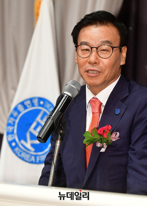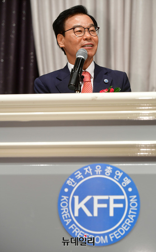 이석열 한국자유총연맹 대구광역시지부 회장이 15일 대구 남구 프린스호텔에서 열린 '2017 청년회장 합동 연수'에서 환영사를 하고 있다.