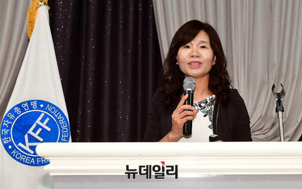 옥제영 문성대학교 교수가 15일 대구 남구 프린스호텔에서 열린 '2017 한국자유총연맹 청년회장 합동연수'에서 '나와 조직의 가치를 높이는 길'을 주제로 강연을 하고 있다.