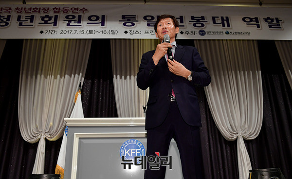 정영만 한국자유총연맹 대구광역시지부 수석부회장이 15일 대구 남구 프린스호텔에서 열린 '2017 청년회장 합동연수'에서 강연하고 있다.