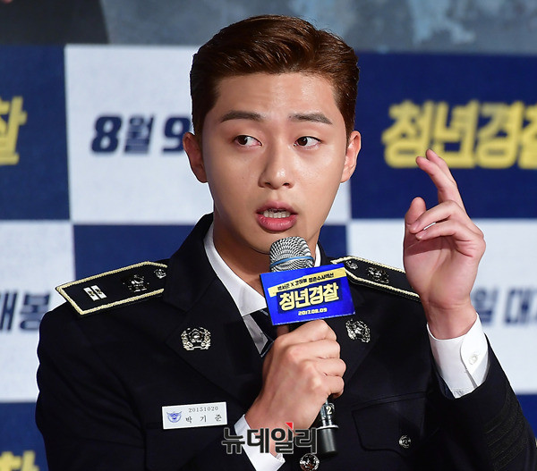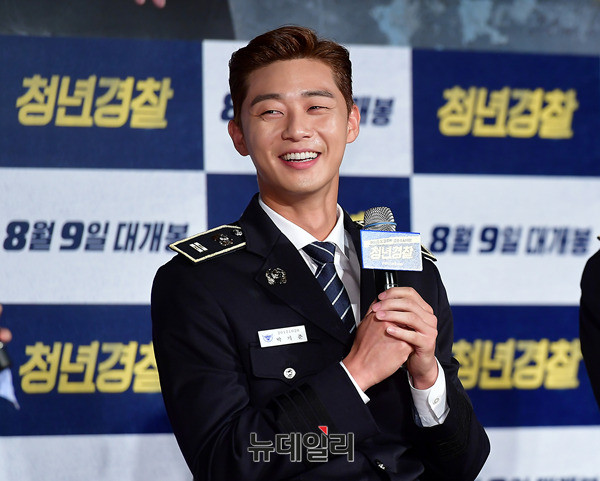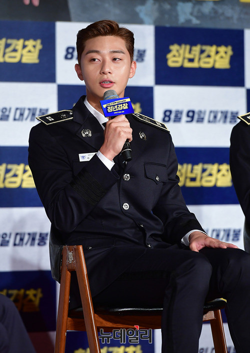 배우 박서준이 17일 오전 서울 광진구 롯데시네마 건대입구에서 열린 영화 '청년경찰(감독 김주환)' 제작보고회에서 참석해 질의를 듣고 있다.