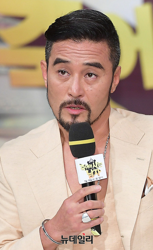 배우 최민수가 17일 서울 마포구 상암MBC 골든마우스홀에서 열린 수목 미니시리즈 '죽어야 사는 남자(연출 고동선, 극본 김선희)' 제작발표회에서 질의 응답 도중 미소를 짓고 있다.