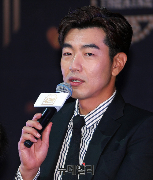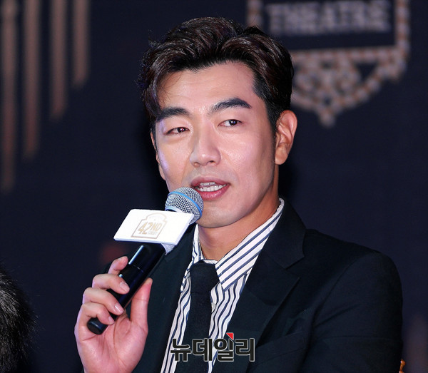 배우 이종혁이 17일 오후 서울 중구 밀레니엄 서울힐튼 그랜드볼룸에서 열린 뮤지컬 '브로드웨이 42번가' 제작발표회에 참석해 인사말을 전하고 있다.