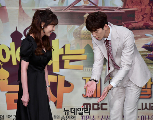배우 강예원이 17일 서울 마포구 상암MBC 골든마우스홀에서 열린 수목 미니시리즈 '죽어야 사는 남자(연출 고동선, 극본 김선희)' 제작발표회에서 인사를 하고 있다. 강예원은 드라마 작가를 꿈꾸는 이지영A 역을 맡았다.