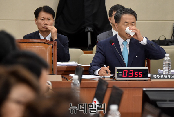 박능후 보건복지부 장관 후보자가 18일 오전 국회에서 열린 인사청문회에서 물을 마시고 있다.