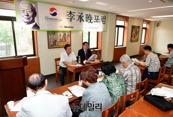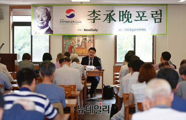 김영림 신동아 일본 통신원이 18일 서울 중구 프란치스코 회관에서 열린 제77회 이승만포럼에서 '청년 이승만과 독립정신의 길-이승만의 독립운동의 기점'을 주제로 강연을 하고 있다.