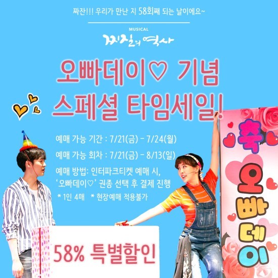극중 여자주인공 '설하'가 남자주인공 '민기'와의 만남 58일째 되는 날 이벤트를 준비했던 것과 같이, 관객을 만난 지 58회가 되는 날을 기념해 58% 특별 할인을 마련했다.