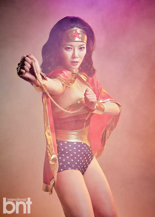 마지막 콘셉트에서는 외국에서나 볼 수 있는 원더우먼을 표현했다. 원더우먼의 실제 헤어스타일과 메이크업을 그대로 연출, 익살스러운 포즈와 표정이 어우러지며 여전사 원더우먼을 완벽하게 재현했다. -