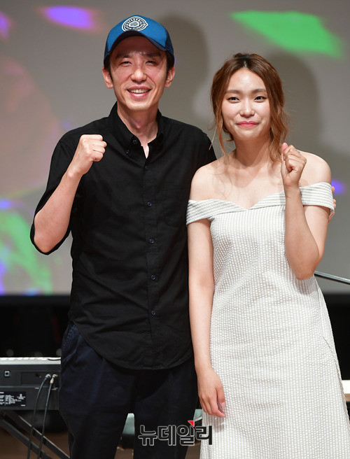 가수 유희열과 이진아가 20일 오전 서울 강남구 일지아트홀에서 열린 이진아의 2번째 미니앨범 'RANDOM' 쇼케이스에서 포토타임을 갖고 있다. 이번 앨범은 지난해 6월 첫 번째 미니앨범 '애피타이저' 발매 이후 13개월여 만이다. 타이틀곡 랜덤을 비롯해 7곡을 담았다. 음원과 뮤직비디오는 오후 6시에 공개 됐다.