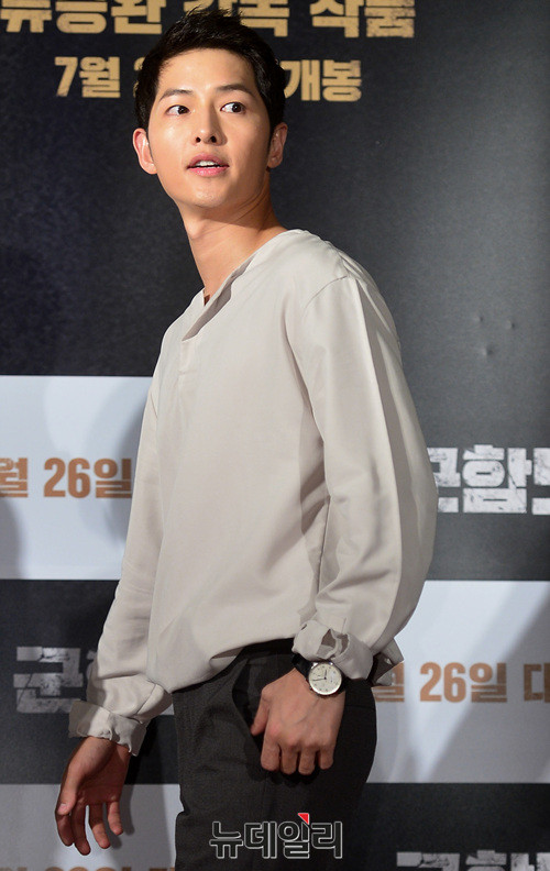 배우 송중기가 20일 오후 서울 용산CGV에서 열린 영화 '군함도' VIP 시사회에 참석해 포토타임을 갖고 있다. 송중기는 군함도에 잠입하는 광복군 박무영 역을 맡았다.