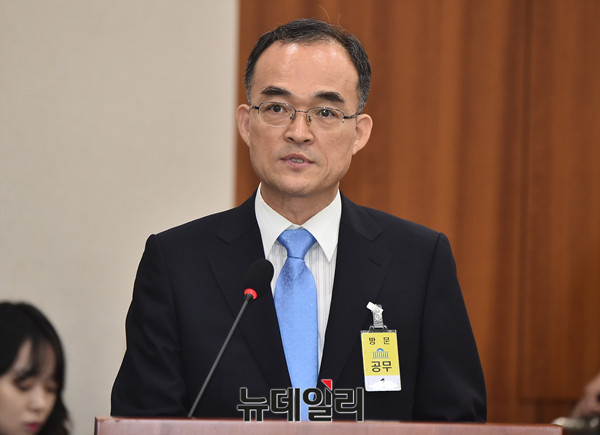 문무일 검찰총장 후보자가 24일 오전 국회에서 열린 법제사법위원회 인사청문회에 출석해 선서를 하고 있다.