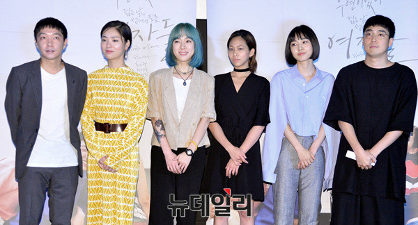 영화 '여자들(감독 이상덕)'의 감독과 배우들(최시형, 전여빈, 채서진, 요조, 유이든, 전소니)이 24일 오전 서울 광진구 롯데시네마 건대입구에서 열린 언론시사회에 참석해 포토타임을 갖고 있다.