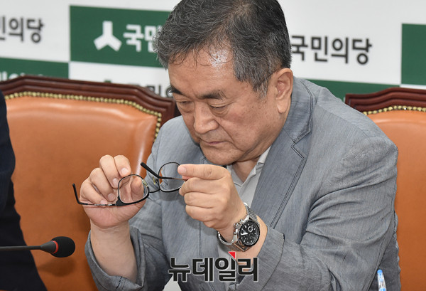 국민의당 김태일 혁신위원장이 24일 오후 국회에서 열린 비상대책위원회-전당대회준비위원회-혁신위원회 함동 간담회에서 안경을 고쳐쓰고 있다.