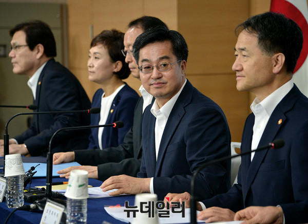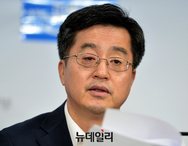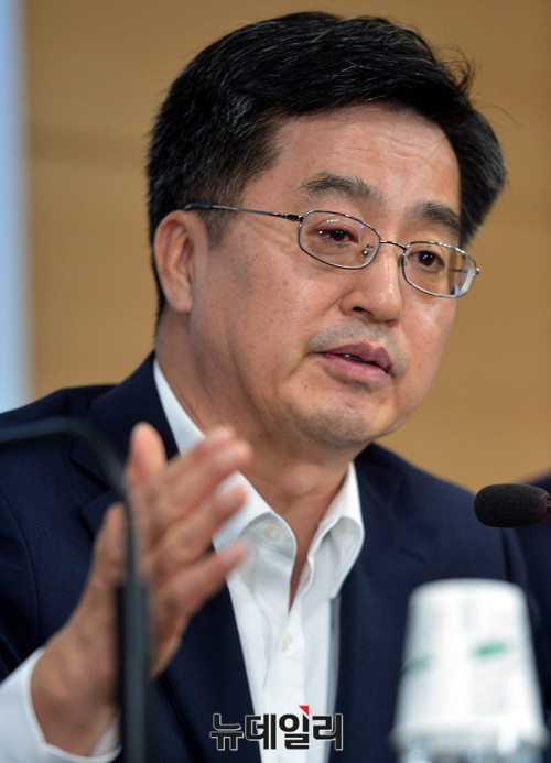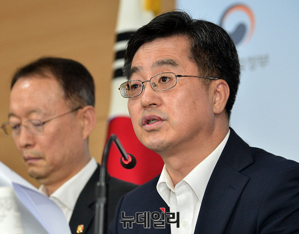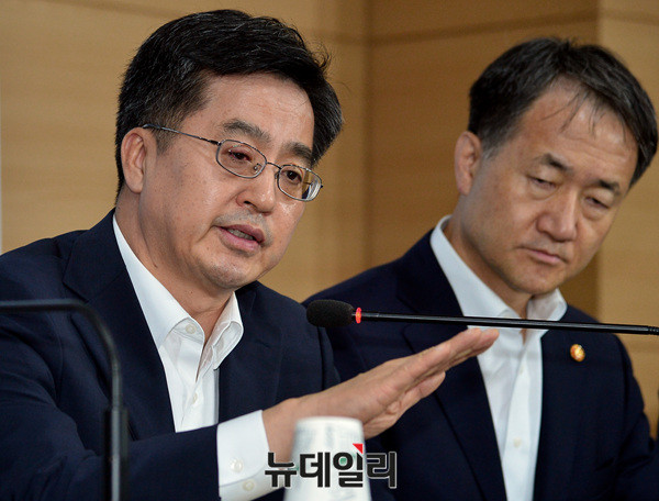 김동연 경제부총리 겸 기획재정부 장관이 25일 오후 정부서울청사에서 '새정부 경제정책방향' 브리핑을 하고 있다. 이날 김 부총리는 소득주도성장, 일자리 중심 경제, 혁신성장, 공정경제 등 네 가지 방향으로 경제정책을 운용하겠다고 밝혔다.