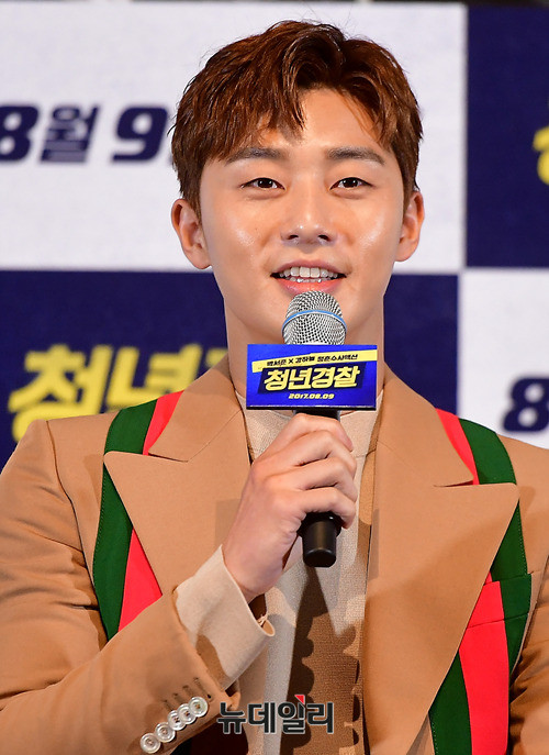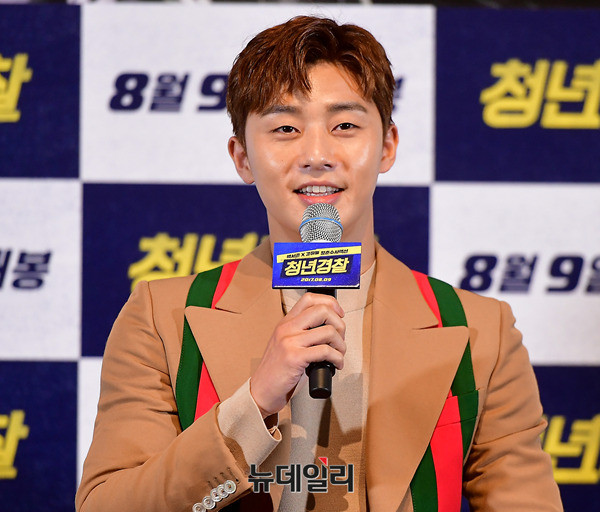 배우 박서준이 25일 오후 서울 광진구 롯데시네마 건대입구에서 열린 영화 '청년경찰(감독 김주환)' 언론시사회에 참석해 인사말을 하고 있다. 청년경찰은 오는 8월 9일 개봉을 앞두고 있다.