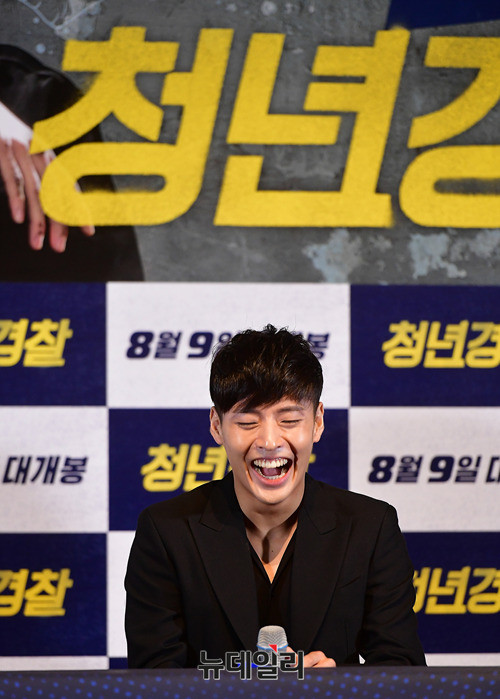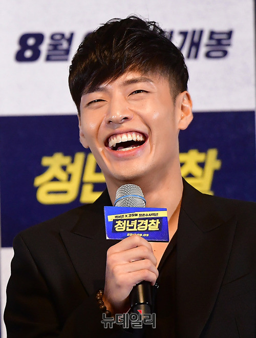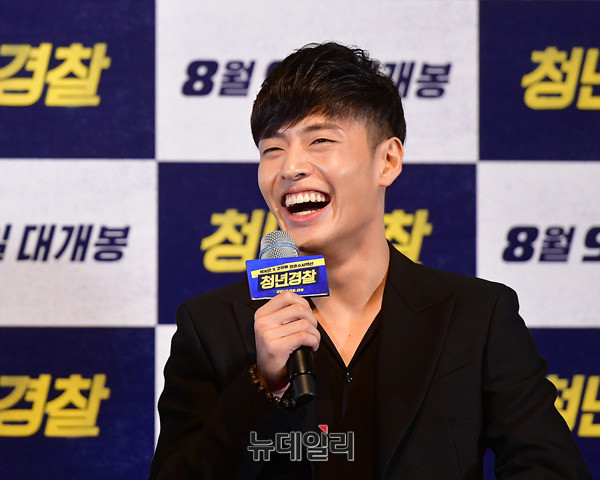배우 강하늘이 25일 오후 서울 광진구 롯데시네마 건대입구에서 열린 영화 '청년경찰(감독 김주환)' 언론시사회에 도중 미소를 짓고 있다. 청년경찰은 오는 8월 9일 개봉을 앞두고 있다.